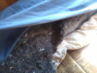 Le canapé était complètement défoncé après 15 ans d’usage. Je l’est donc refait avec les moyens du bord. A ma disposition l’ancien canapé, du carton, de la mousse, et de vieux rideau.