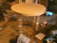 Avec un nouveau canapé il apparait clairement que le table démesurée coupe la pièce et qu’une table pour 6 ronde sera bien plus adapté à notre vie de famille. A ma disposition, du carton, des pigments naturelle maison, du vernis et du kraft gommé.