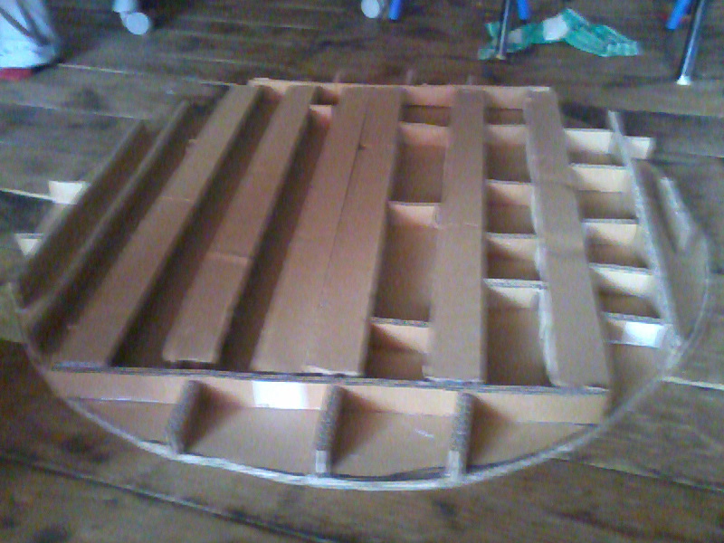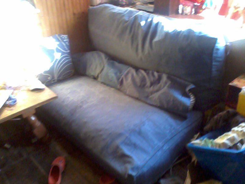 Le canapé était complètement défoncé après 15 ans d’usage. Je l’est donc refait avec les moyens du bord. A ma disposition l’ancien canapé, du carton, de la mousse, et de vieux rideau.